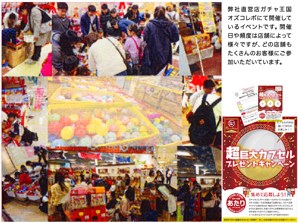 令和元年 12月 | 業界初 あたりシールにて「巨大ガチャプレゼント企画」実施 |